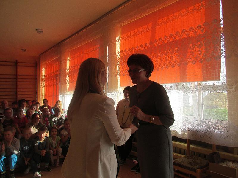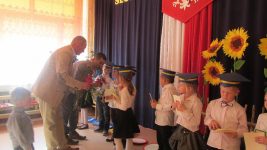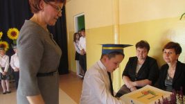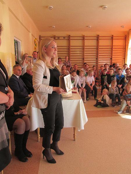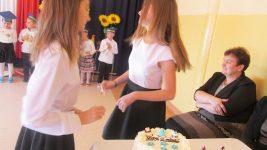 Po części oficjalnej przyszedł czas na przemówienia i wręczanie prezentów. Jako pierwsza zabrała głos przedstawicielka Rady Rodziców, która mówiła, że ślubowanie to nie tylko przeżycie dla pierwszaków, ale także dla rodziców. Następnie podziękowała pani dyrektor za przyjęcie dzieci do grona społeczności szkolnej oraz pani wychowawczyni za przygotowanie oprawy artystycznej dzisiejszej uroczystości. Zapewniła, że rodzice ze swej strony dołożą wszelkich starań, aby dzieci godnie reprezentowały swoją klasę i szkołę.