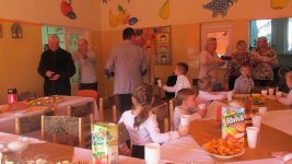 Uroczystość rozpoczęła się punktualnie o godzinie 12. Uświetnili ją swoim przybyciem znamienici goście: Wójt Gminy Jedlnia-Letnisko pan Piotr Leśnowolski, Kierownik Referatu Edukacji, Kultury i Sportu Gminy pani Emilia Romanowska, pani Magdalena Wrażeń – dyrektor Banku Spółdzielczego Rzemiosła w Radomiu oddział w Jedlni-Letnisko oraz ksiądz proboszcz tutejszej parafii pod wezwaniem św. Andrzeja Boboli – ksiądz Krzysztof Cielniak.