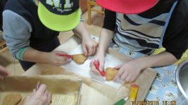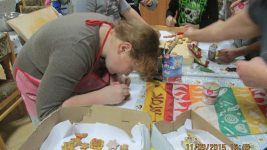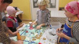 Dzieci mogły poznać krok po kroku etapy powstawania pierników. Wyrobienie ciasta wymagało żmudnej i ciężkiej pracy ze względu na jego konsystencję i w tym pospieszyła nam z pomocą p. Grażyna Kusio, babcia ucznia kl. III.