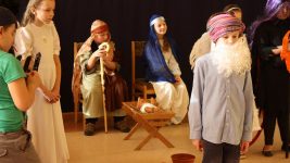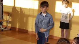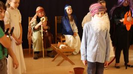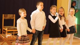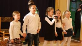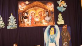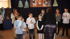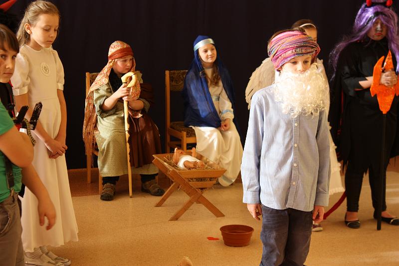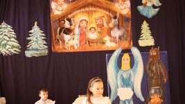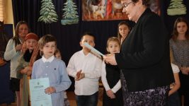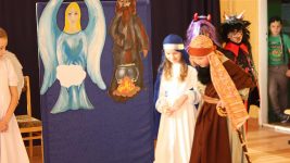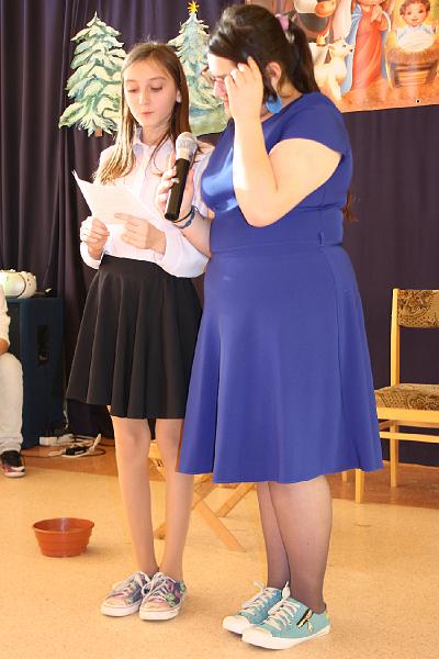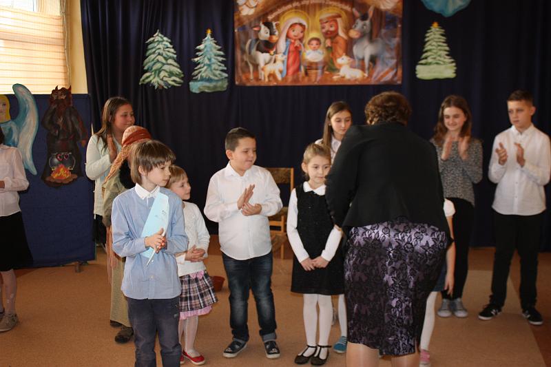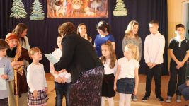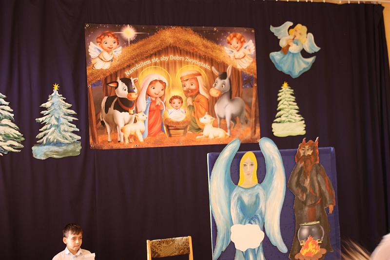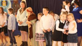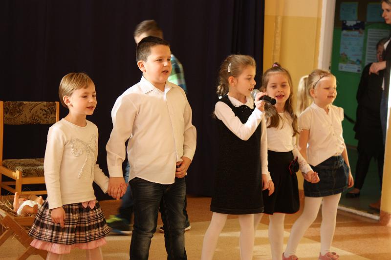 Swoje talenty, aktorskie pokazali uczniowie kl.III wokalnie i grę na dzwonkach -2 uczniów kl.IV- Jakub Warchoł i Bartosz Wróblewski, a w roli Maryi i Józefa wystąpili uczniowie kl.II. Nad przebiegiem przedstawienia czuwała p.Wanda Zielińska – wych. kl. III oraz p. katechetka -Urszula Zawodnik. Jasełka dały wiele radości wszystkim zgromadzonym, ale cenne było również ich przesłanie kształtujące postawę życiową i moralną- warto być dobrym, współczującym, mądrym, dokonywać wyborów sercem, bo od nich zależy także zwycięstwo w otaczającym świecie. Jego źródłem jest Zbawiciel, którego rocznicę urodzin przeżywamy w Boże Narodzenie.