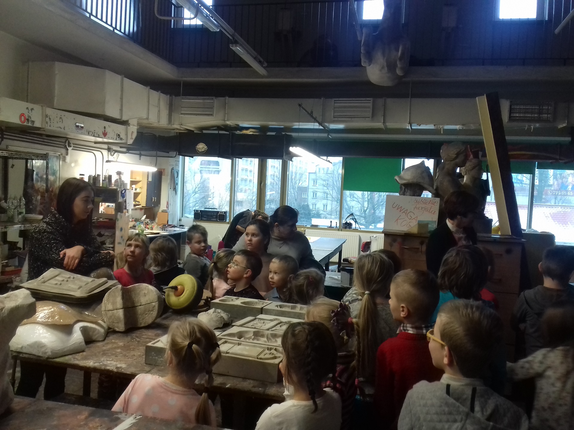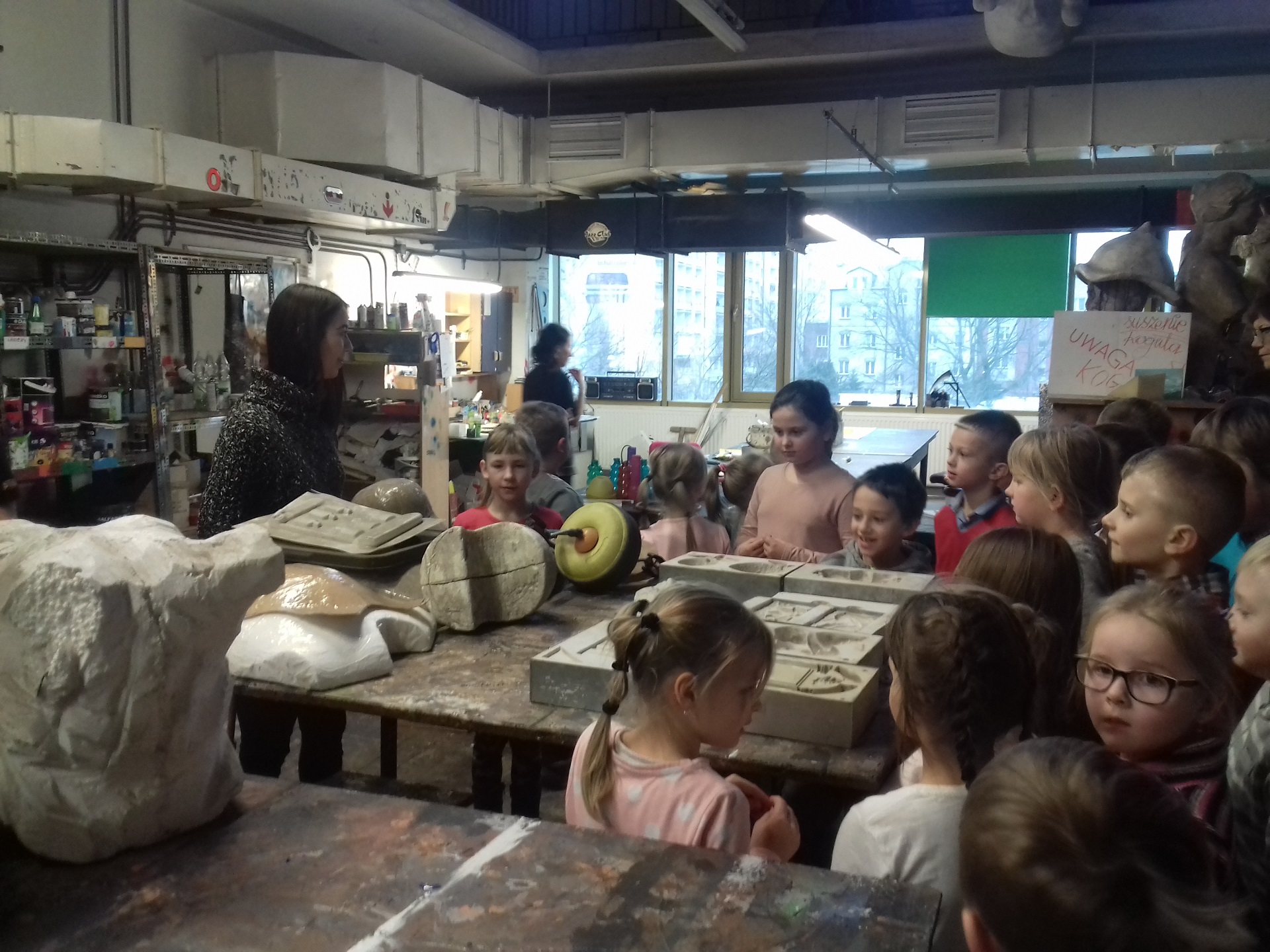 12.01.2018 r. dzieci z OP i uczniowie klas I-III wyjechali do Radomia. W pierwszej kolejności udali się do Teatru Powszechnego im. J. Kochanowskiego na przedstawienie pt. „Czerwony Kapturek – zabawa w teatr”, które odbyło się na scenie fraszka. W teatrze odwiedzili też miejsce, gdzie są przygotowywane rekwizyty do spektakli. Następnie pieszo ulicami Radomia udali się do Muzeum im. Jacka Malczewskiego. Tam zwiedzili stałe wystawy przyrodnicze: „Środowiska przyrodnicze ziemi radomskiej” i „Paleontologia i geologia ziemi radomskiej”. Ta druga wystawa prezentowała przeszłość geologiczną Ziemi Radomskiej i najważniejsze odkrycia paleontologiczne z tego obszaru. Zobaczyliśmy m.in.: bogatą kolekcje skamieniałych amonitów, jeżowców, szczątki zwierząt plejstoceńskich – m.in.: ciosy i zęby trzonowe mamuta wydobyte w trakcie kopania fundamentów radomskiej Fabryki Broni w 1923r. oraz interaktywne, ruchome modele dinozaurów. W czasie pobytu w muzeum dzieci z OP i klasy I brały udział w warsztatach pt. „Śladami smoka wawelskiego”. Warsztaty polegały na samodzielnym wykonaniu imitacji skamieniałego śladu dinozaura, w postaci pamiątkowego „medalu znalazcy”. Uczniowie klasy II i III brali udział w warsztatach przyrodniczych.