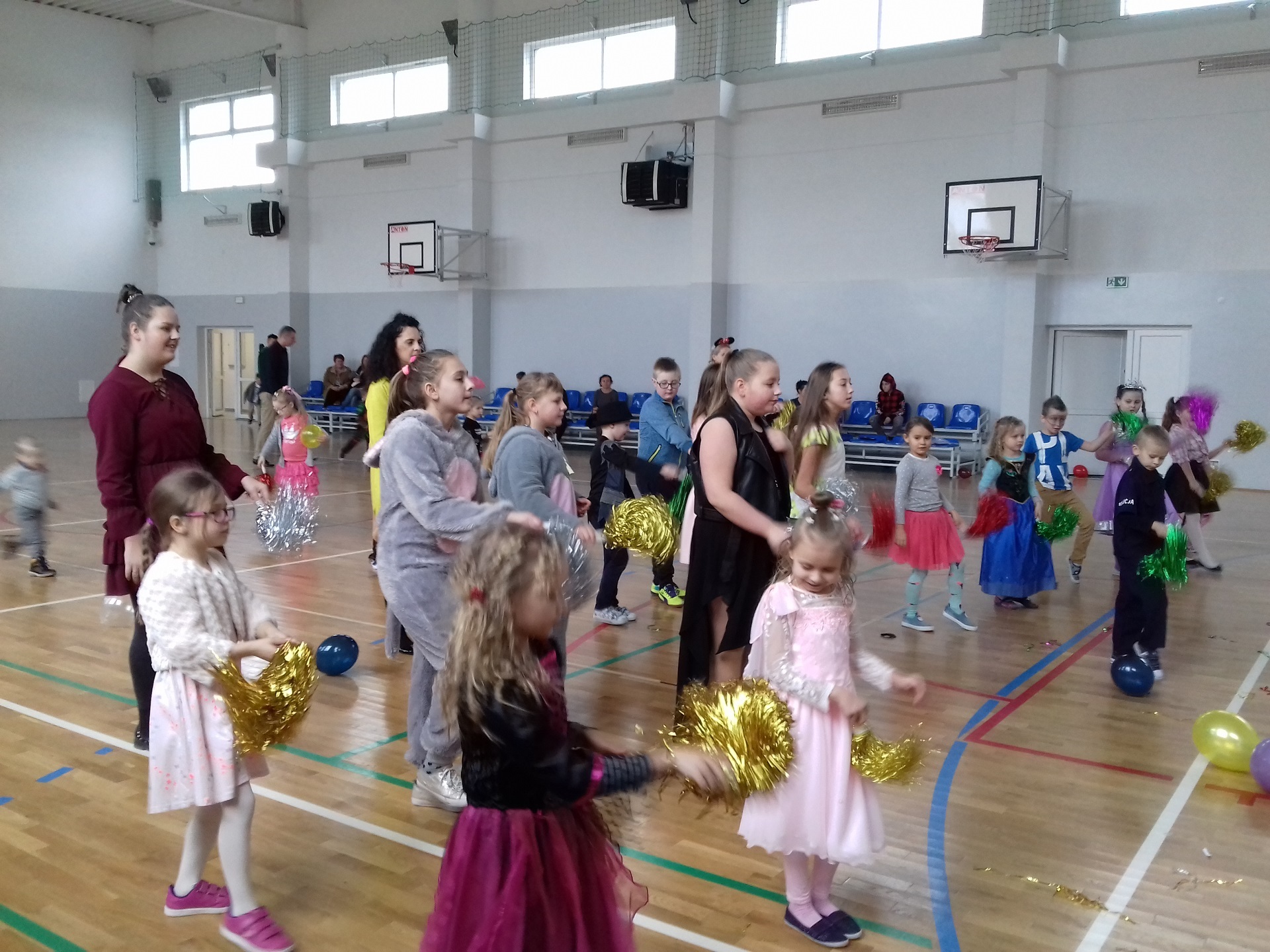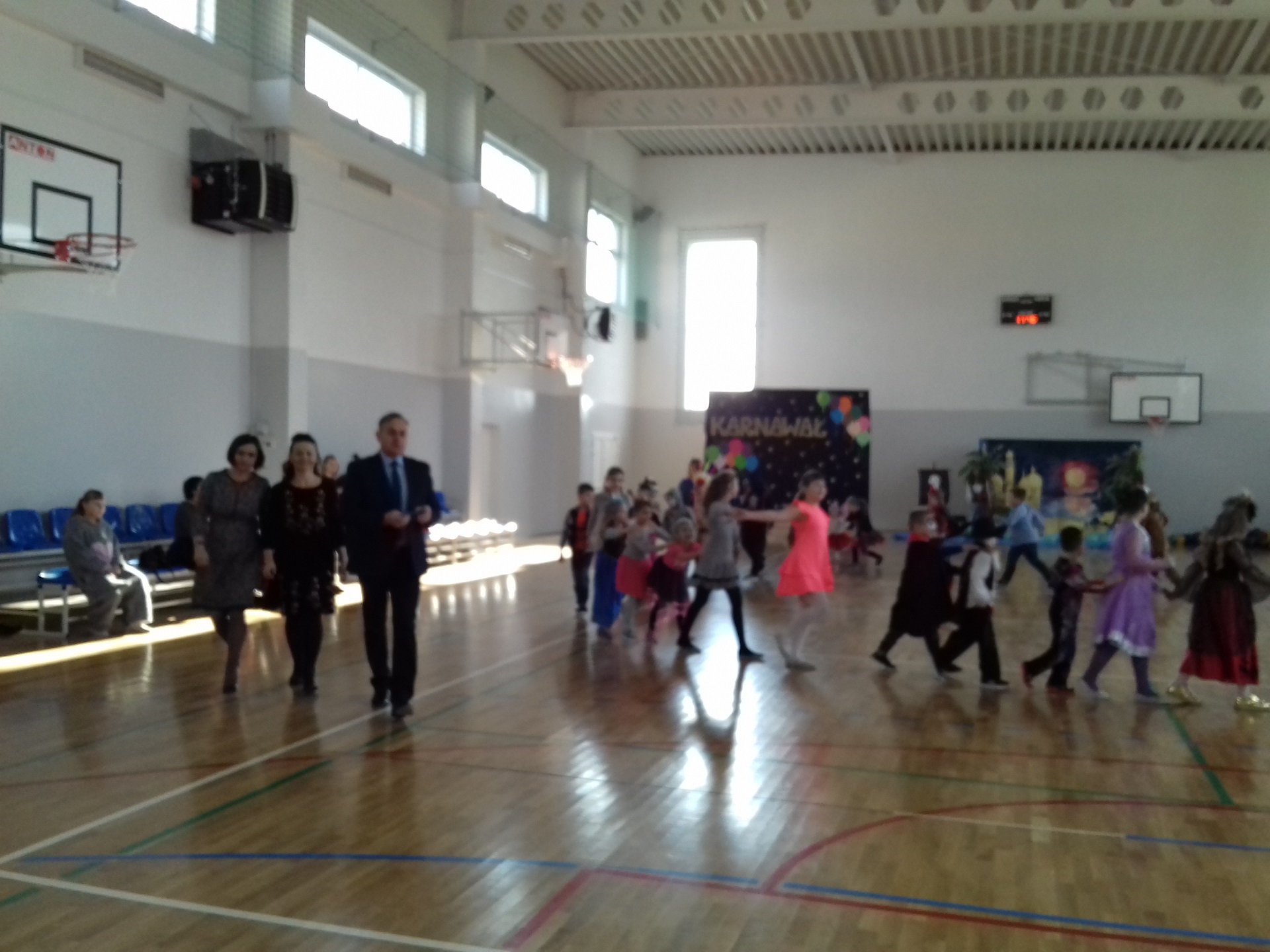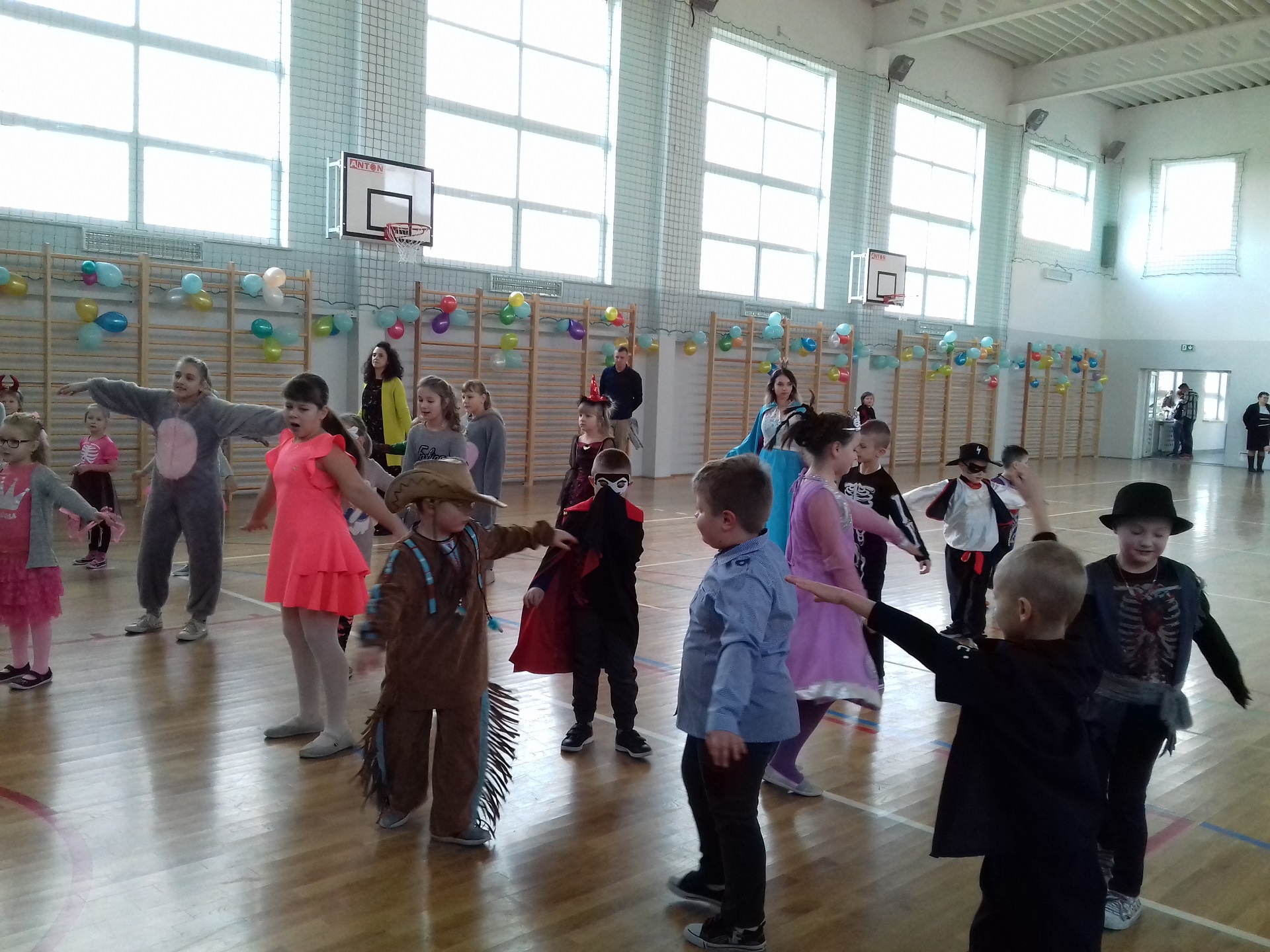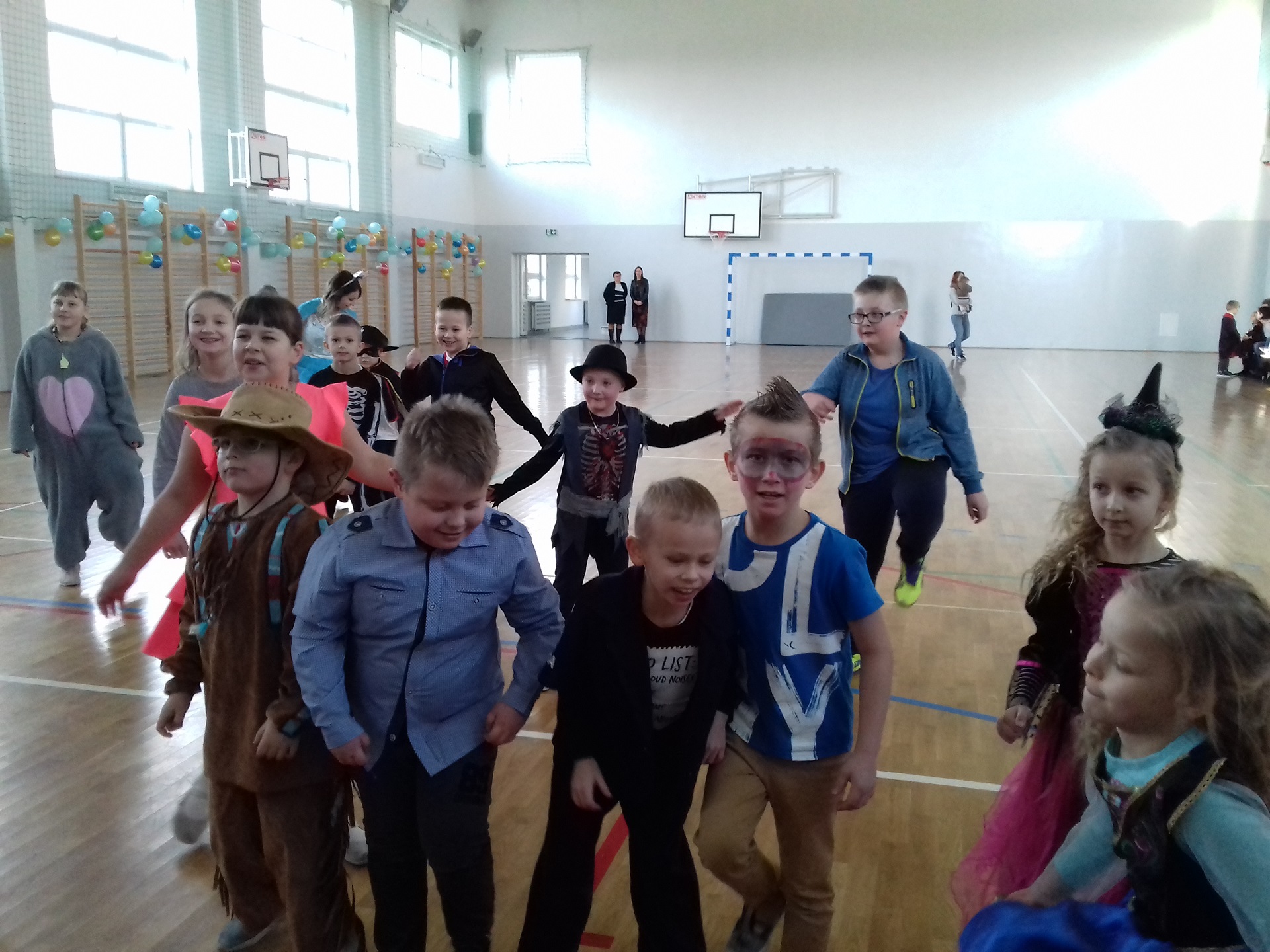 Zabawa karnawałowa w naszej szkole była jednym z bardziej oczekiwanych i przyjemnych wydarzeń dla dzieci. Z tego powodu sala gimnastyczna została pięknie przystrojona w karnawałową dekorację. 13 stycznia 2018 r. pani Dyrektor Małgorzata Hantz przywitała przybyłych gości – pana Wójta Gminy Piotra Leśnowolskiego, radną panią Beatę Bartkiewicz oraz rodziców, nauczycieli, uczniów i życzyła wszystkim wesołej zabawy. Uczestnicy zabawy zabrali ze sobą świetne humory i dali się porwać wesołym, karnawałowym rytmom. Dzieci bawiły się wybornie z animatorami i ze swymi nauczycielami. W trakcie trwania zabawy uczniowie udali się na poczęstunek przygotowany przez Radę Rodziców.