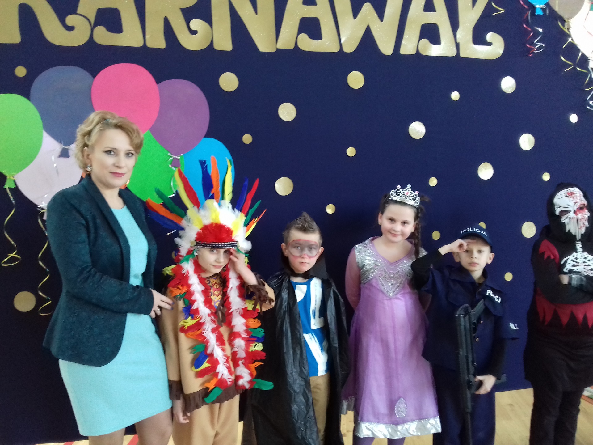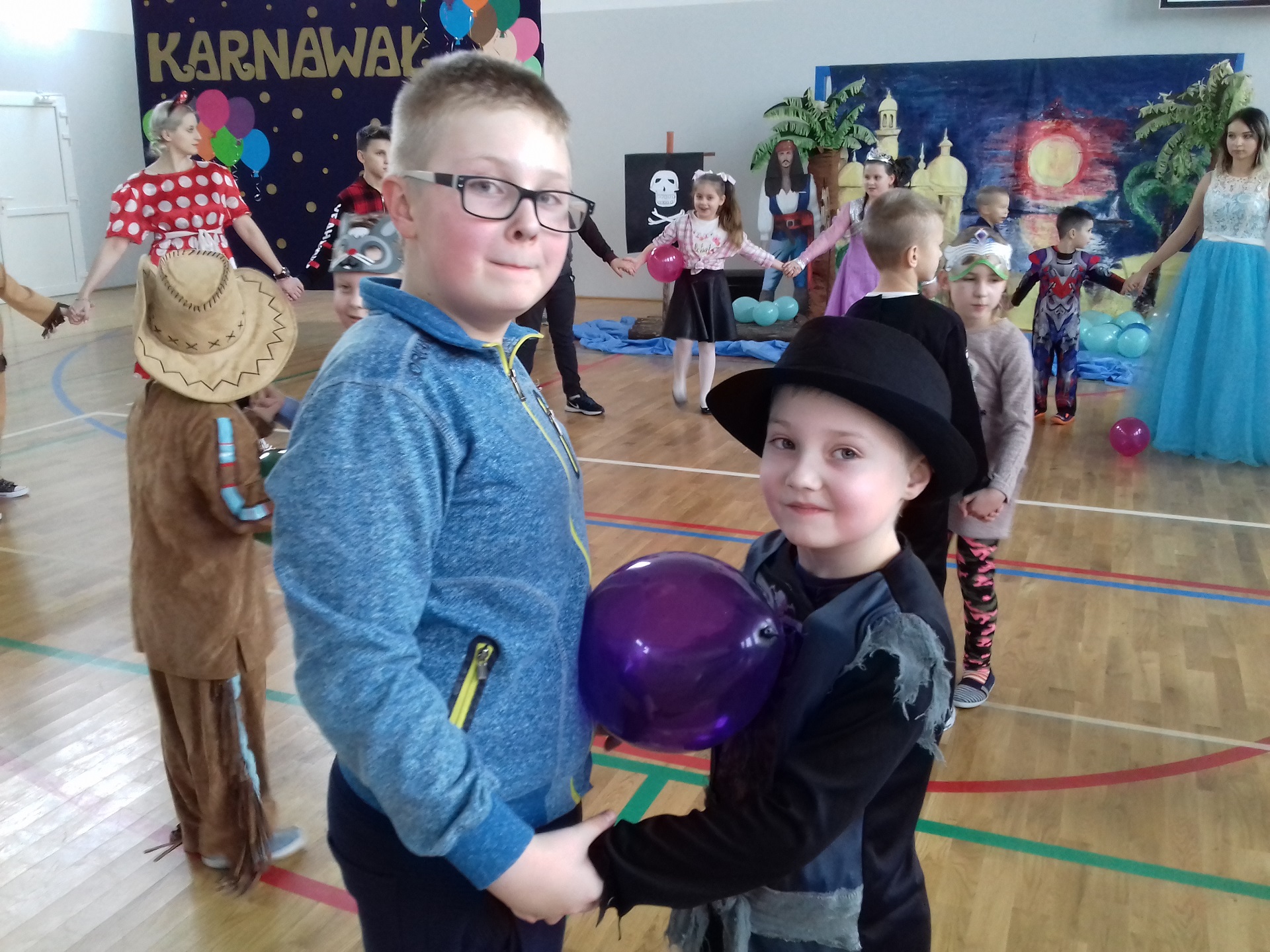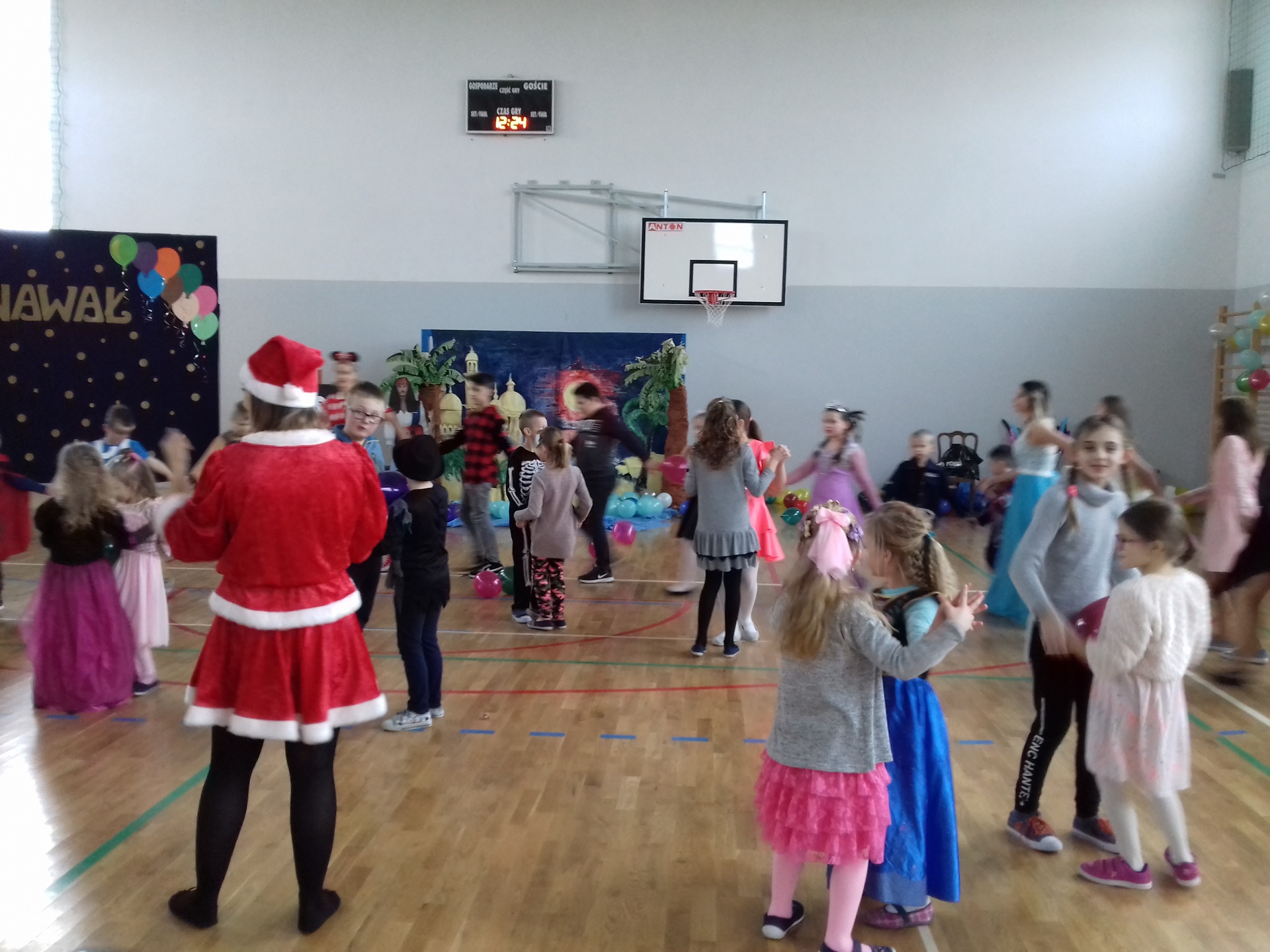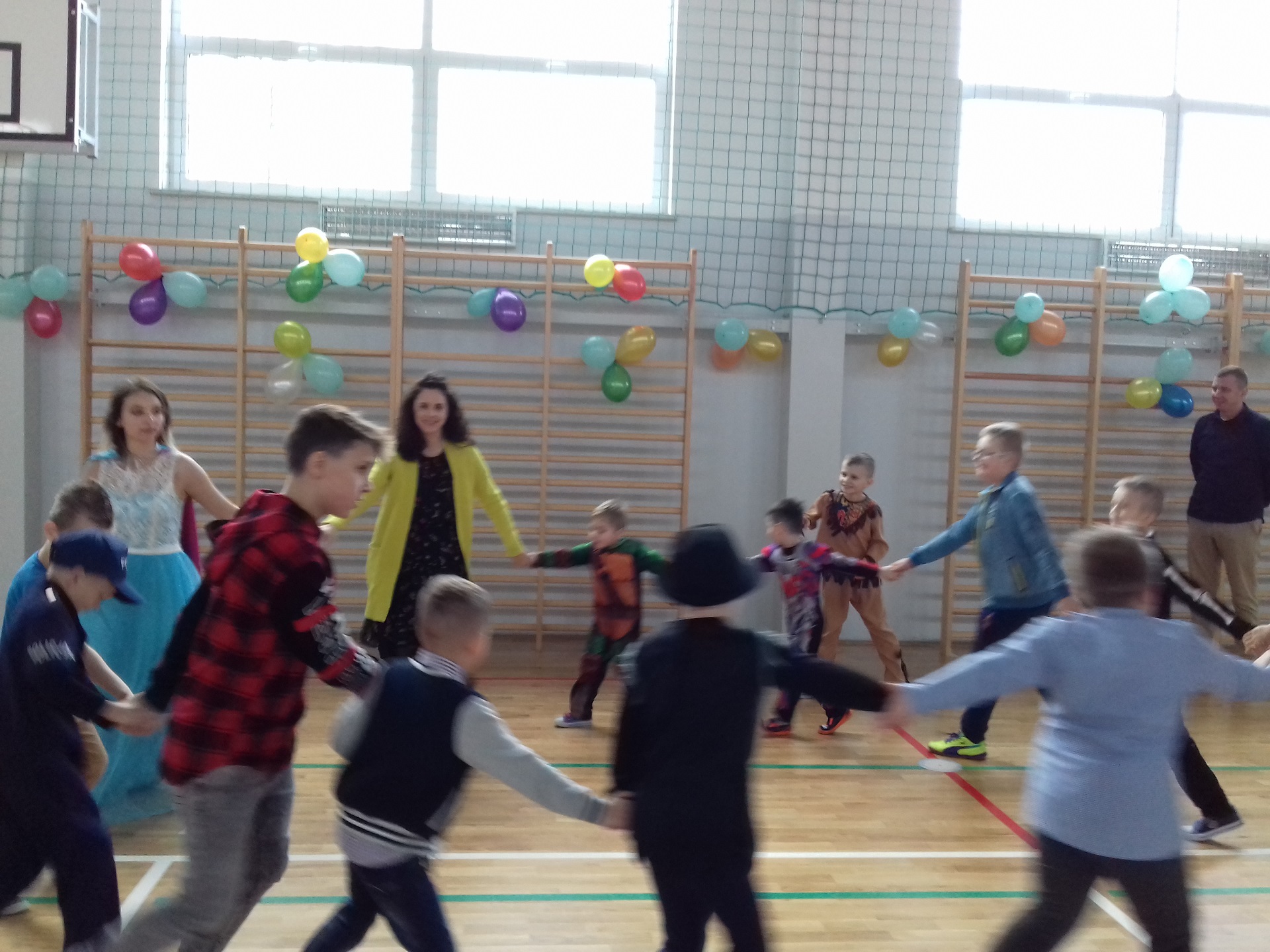 Zabawa karnawałowa w naszej szkole była jednym z bardziej oczekiwanych i przyjemnych wydarzeń dla dzieci. Z tego powodu sala gimnastyczna została pięknie przystrojona w karnawałową dekorację. 13 stycznia 2018 r. pani Dyrektor Małgorzata Hantz przywitała przybyłych gości – pana Wójta Gminy Piotra Leśnowolskiego, radną panią Beatę Bartkiewicz oraz rodziców, nauczycieli, uczniów i życzyła wszystkim wesołej zabawy. Uczestnicy zabawy zabrali ze sobą świetne humory i dali się porwać wesołym, karnawałowym rytmom. Dzieci bawiły się wybornie z animatorami i ze swymi nauczycielami. W trakcie trwania zabawy uczniowie udali się na poczęstunek przygotowany przez Radę Rodziców.