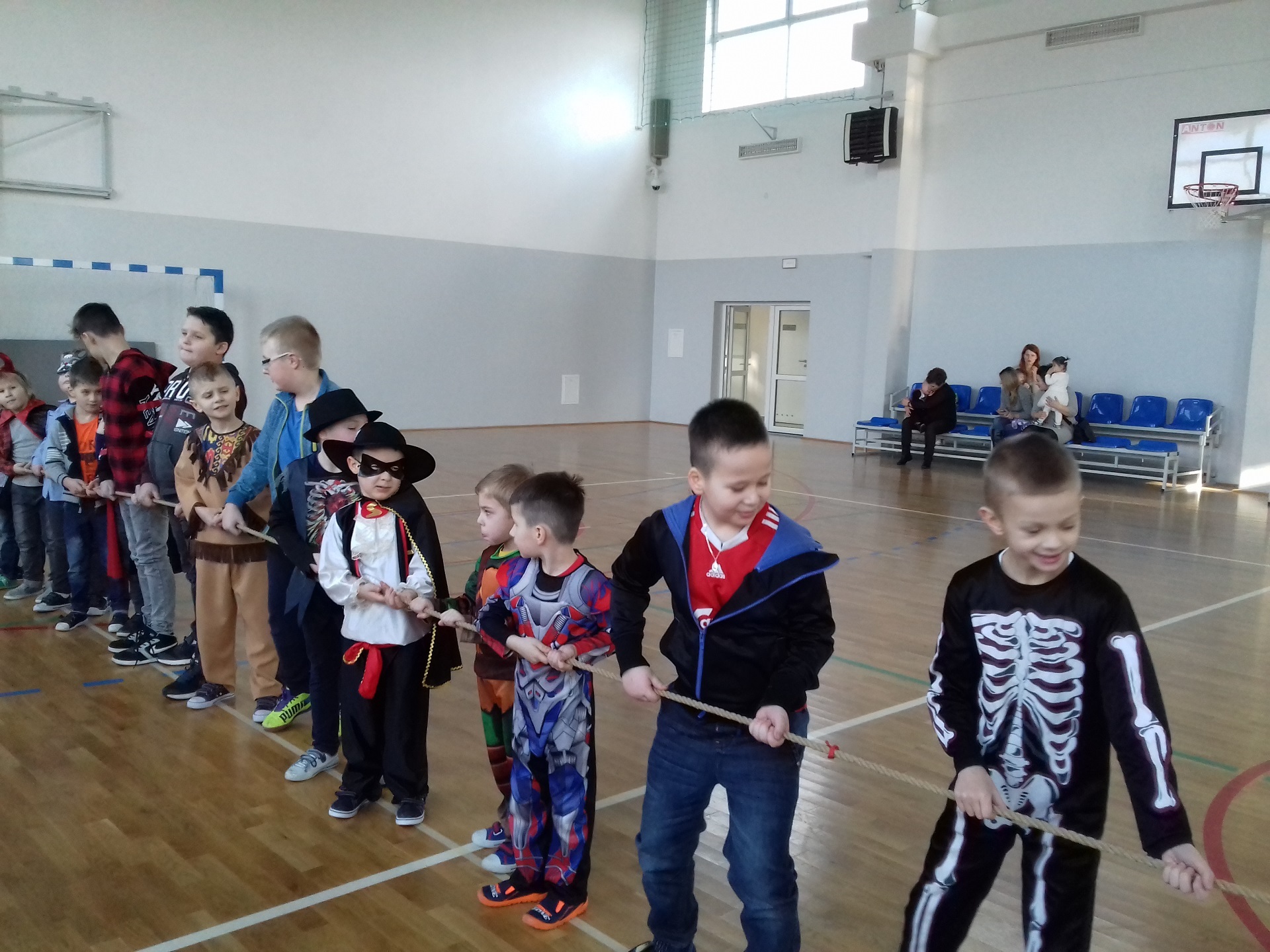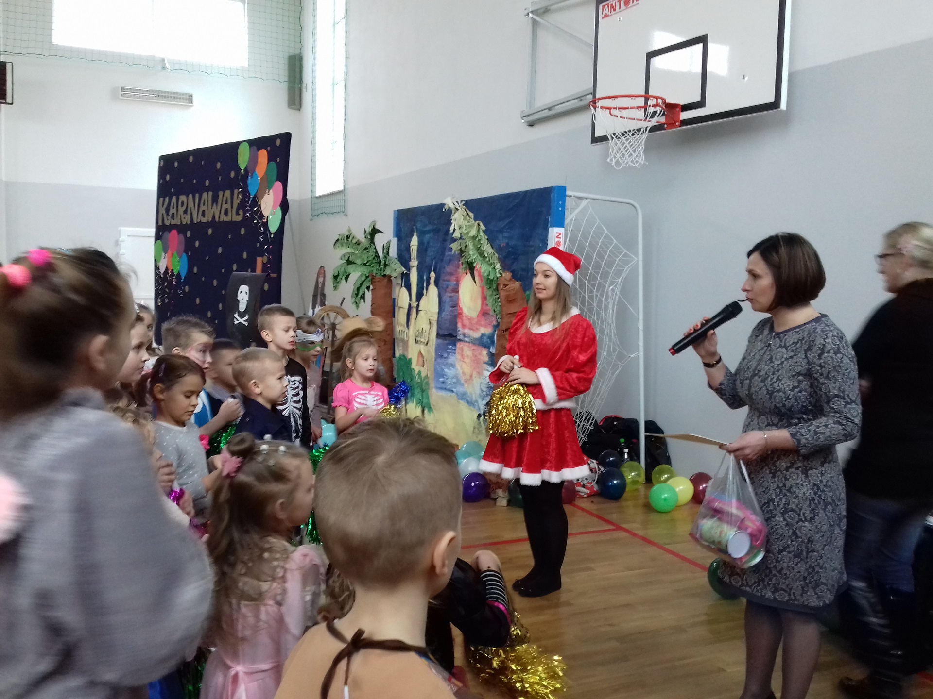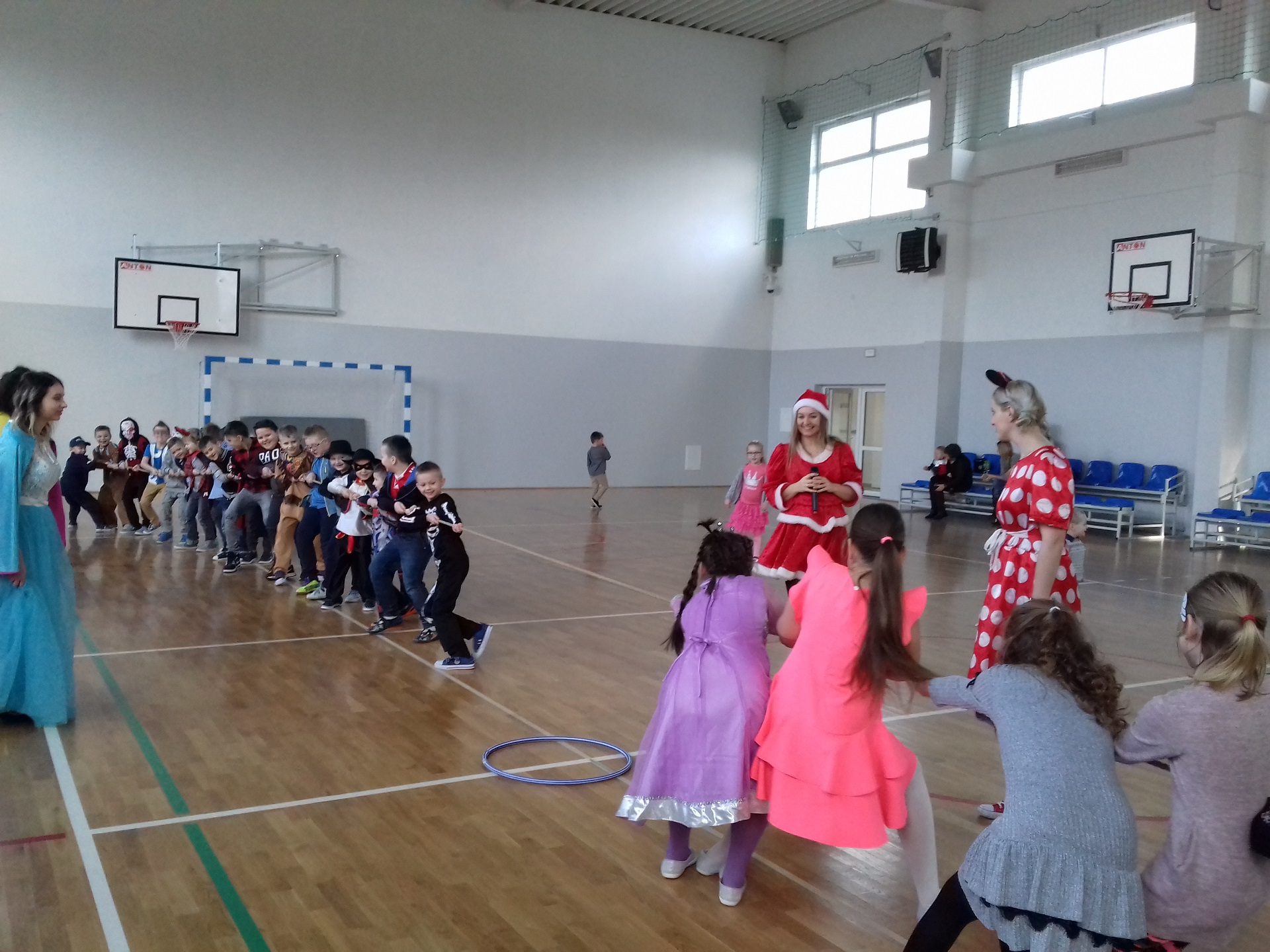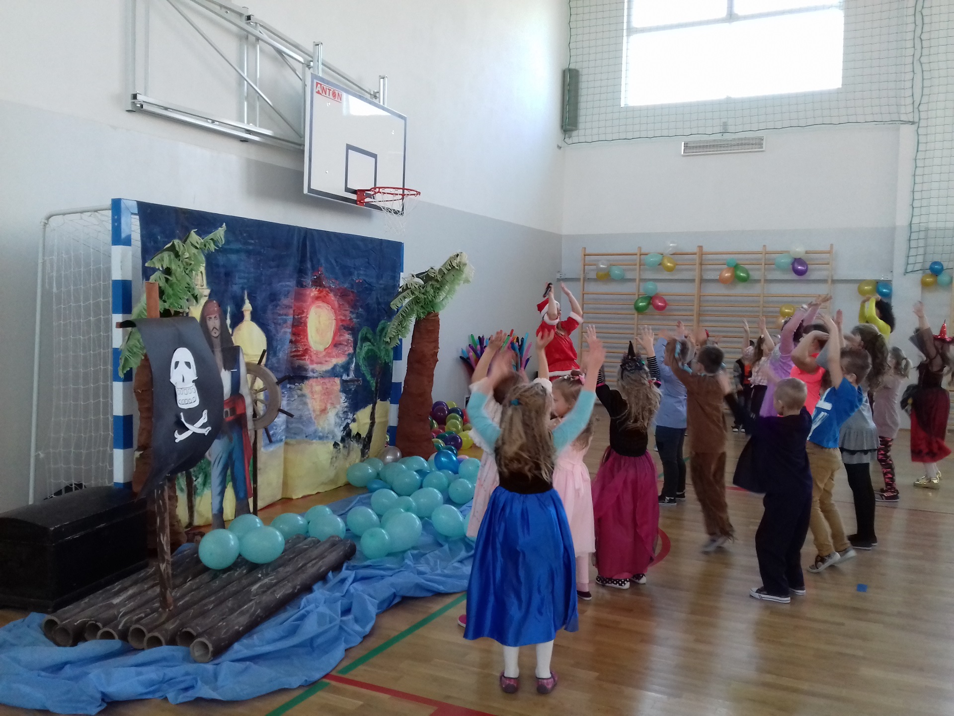 Zabawa karnawałowa w naszej szkole była jednym z bardziej oczekiwanych i przyjemnych wydarzeń dla dzieci. Z tego powodu sala gimnastyczna została pięknie przystrojona w karnawałową dekorację. 13 stycznia 2018 r. pani Dyrektor Małgorzata Hantz przywitała przybyłych gości – pana Wójta Gminy Piotra Leśnowolskiego, radną panią Beatę Bartkiewicz oraz rodziców, nauczycieli, uczniów i życzyła wszystkim wesołej zabawy. Uczestnicy zabawy zabrali ze sobą świetne humory i dali się porwać wesołym, karnawałowym rytmom. Dzieci bawiły się wybornie z animatorami i ze swymi nauczycielami. W trakcie trwania zabawy uczniowie udali się na poczęstunek przygotowany przez Radę Rodziców.