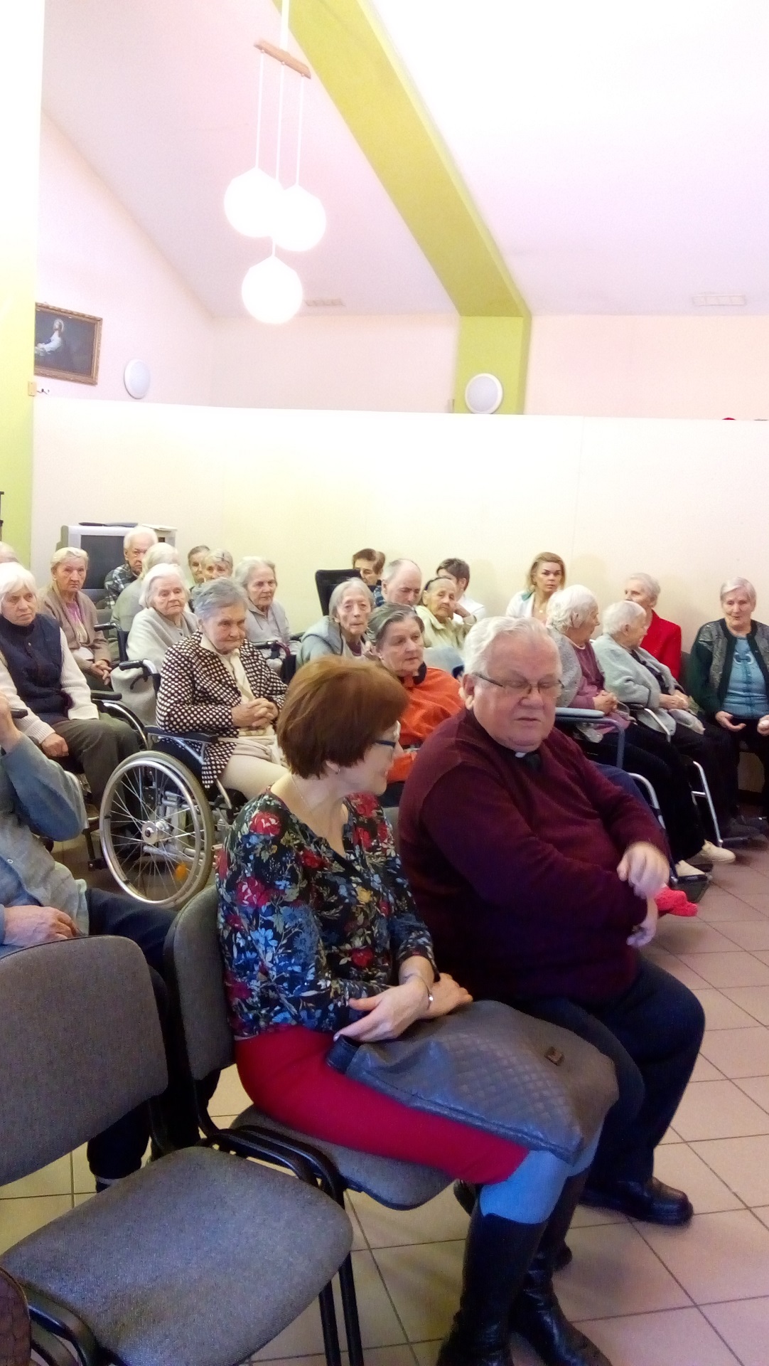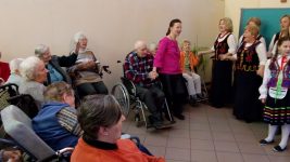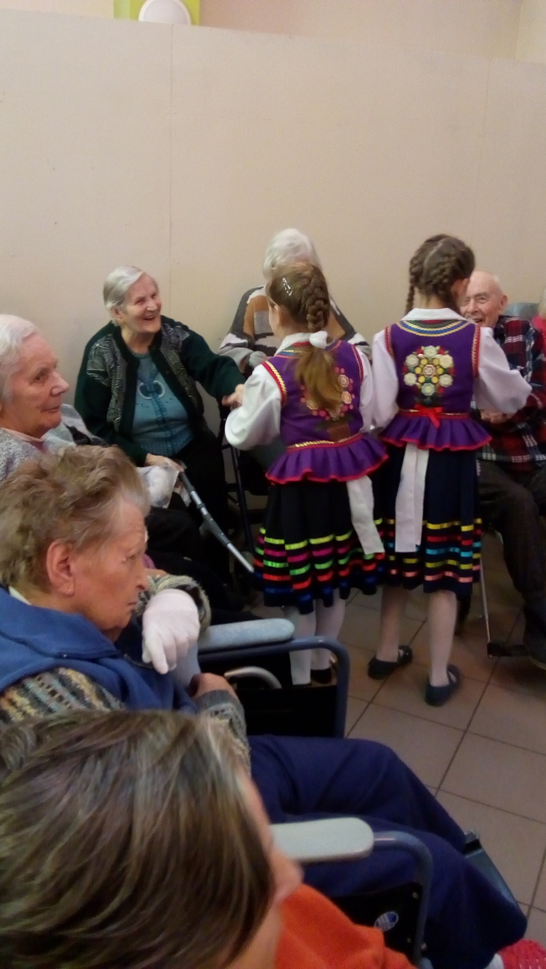 2 lutego 2018 r. zespół ludowy „Fasolki” wraz z opiekunami odwiedził Pallotyńskie Centrum Rehabilitacyjno- Pielęgnacyjne im. św. Wincentego we Wrzosowie. Było to spotkanie pensjonariuszy z dziećmi i młodzieżą z Młodzieżowej Rady Gminy z okazji Dnia Babci i Dziadka. W spotkaniu uczestniczyła przewodnicząca Rady Gminy pani Bożena Grad, radna pani Beata Bartkiewicz, nauczyciele oraz zaproszeni goście. Pensjonariusze z wielkim zainteresowaniem i łzami wzruszenia obejrzeli przygotowany program artystyczny. „Fasolki” pięknie zaprezentowały swój przygotowany repertuar.