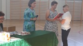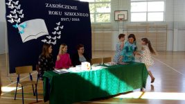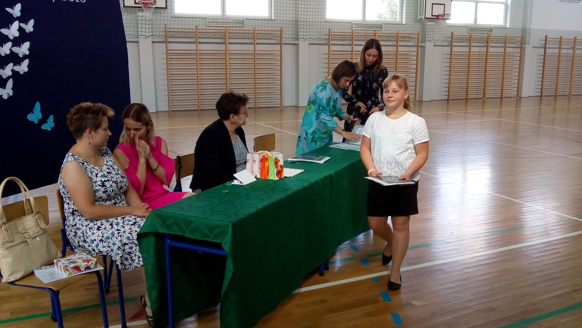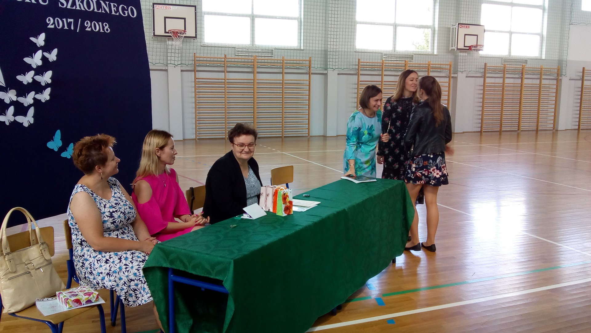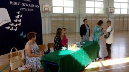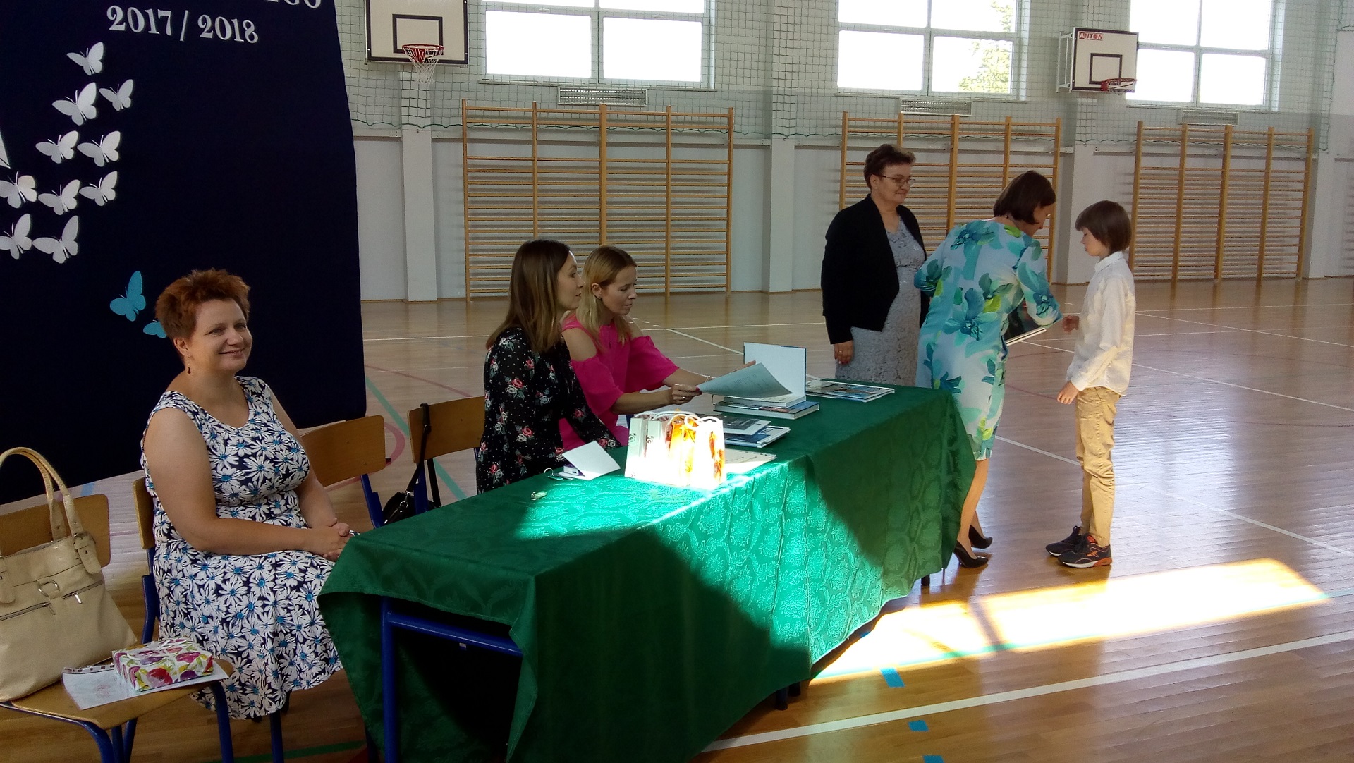 Dnia 22 czerwca odbyło się zakończenie roku szkolnego 2017/2018. O godz. 8.00 społeczność szkolna uczestniczyła we mszy świętej, a następnie w uroczystości na hali sportowej. Na uroczysty apel przybyli nauczyciele na czele z panią dyrektor Małgorzatą Hantz, ks. proboszcz Krzysztof Cielniak, uczniowie, ich rodzice. Uroczystość rozpoczęto wprowadzeniem sztandaru szkoły. Po odśpiewaniu hymnu narodowego i hymnu szkoły pani dyrektor powitała wszystkich zebranych i krótko podsumowała minione miesiące nauki. Następnie najzdolniejsi uczniowie naszej szkoły oprócz świadectw z czerwonym paskiem otrzymali również nagrody książkowe. W czasie tej uroczystości wyróżnieni zostali także najlepsi czytelnicy oraz laureaci szkolnego konkursu matematycznego.