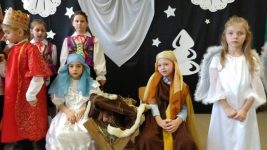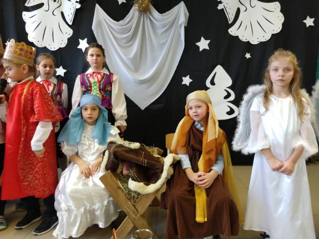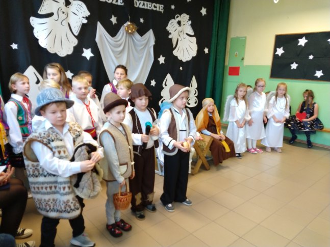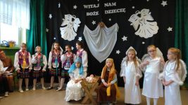 W magiczny, świąteczny nastrój przenieśliśmy się 21 grudnia 2018 r. podczas szkolnych Jasełek. W przedstawieniu brała udział cała społeczność szkolna na czele z panią dyrektor Małgorzatą Hantz oraz rodzice. Montaż słowny obrazujący narodziny Dzieciątka przygotowały dzieci ze starszego oddziału przedszkolnego i klasy 1 pod opieką pani Urszuli Zawodnik i Elżbiety Molendy. Był on przeplatany pięknymi kolędami i pastorałkami w wykonaniu zespołu ludowego naszej szkoły „Fasolek”. Po przedstawieniu pani dyrektor złożyła wszystkim świąteczne i noworoczne życzenia.