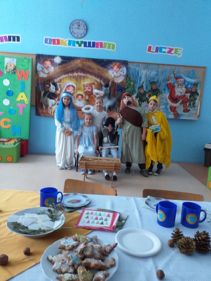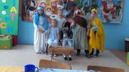 Uczniowie każdej klasy oraz oddziały przedszkolne wraz z wychowawcami brali także udział w wigiliach, podtrzymując ten piękny staropolski zwyczaj wspólnego biesiadowania i kolędowania.